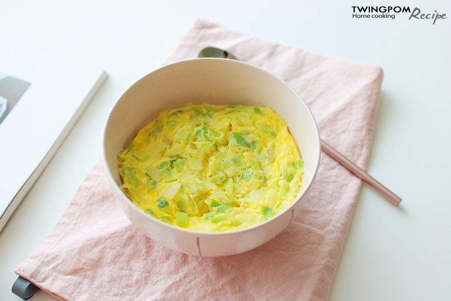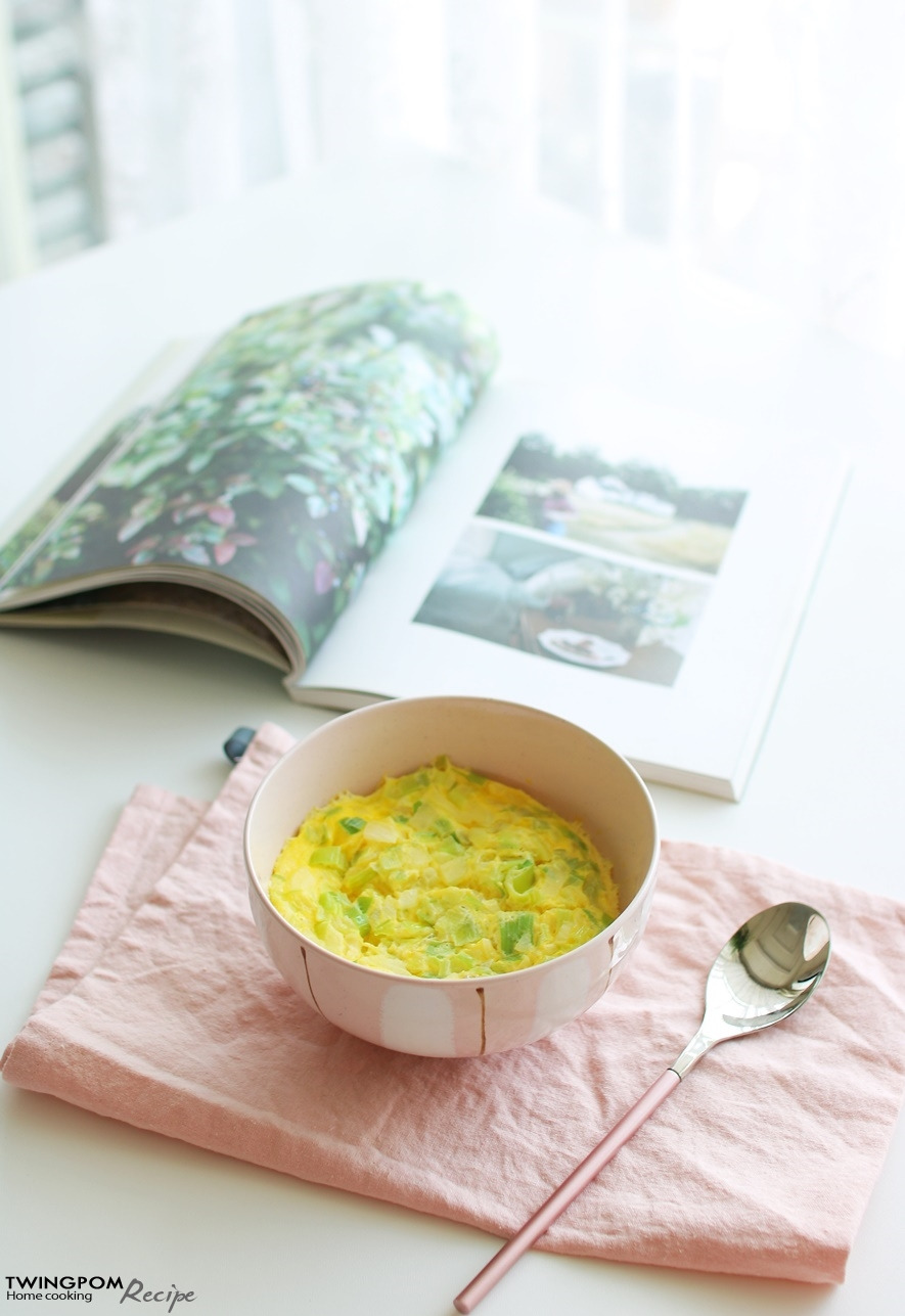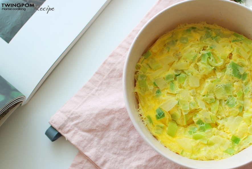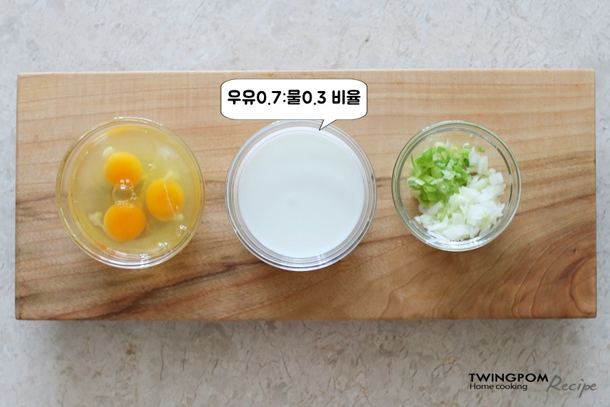 재료: 달걀3개, 물과 우유, 대파 한줌, 양파 한줌